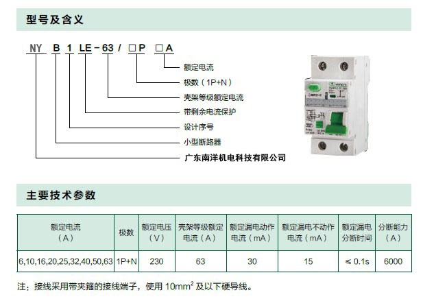NYB1LE-63 系列是我公司新研发的一款小型漏电保护断路器,适用于交流50Hz 或60Hz,额定电压至AC230V,额定电流到63A 的单相住宅线路中,作为人身触电保护之用,并对民用电气线路的过载和短路进行保护。该产品具有体积小,分断能力高;零、火线同时切断,并在火线接反的情况下,仍能对人身触电进行保护。本产品亦可根据用户要求,增加过压保护功能。