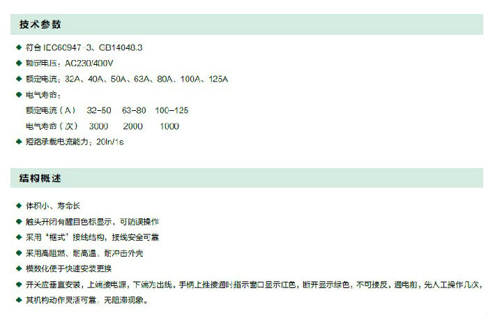 本产品符合标准:IEC60947-3、GB14048.3。