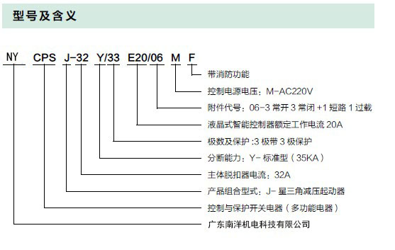 以NYCPS 为主开关,与接触器、时间继电器、电气联锁等附件组合,构成Y- △减压起动器成套单元NYCPSJ、NYCPSJ2( 以NYCPS-F 消防型产品作为主开关,可构成消防型Y- △减压起动器成套单元NYCPSJ-F 或者NYCPSJ2-F),可实现对95KW 及以下电动机的Y- △减压起动控制与保护。