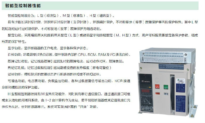 NYW1 系列智能型万能式断路器(以下简称断路器),适用于交流50Hz,额定工作电压690V 及以下,额定电流400A-6300A 的配电网络中,用来分配电能和保护线路及电源设备免受过载、欠电压、短路、单相接地故障的危害,断路器具有智能化保护功能,有较高精度的选择性保护,提高了供电可靠性。同时带有标准的RS485 通讯接口,可进行“遥测”、“遥讯”、“遥控”、“遥调”四遥功能,以满足集群控制中心和自动化系统的要求。