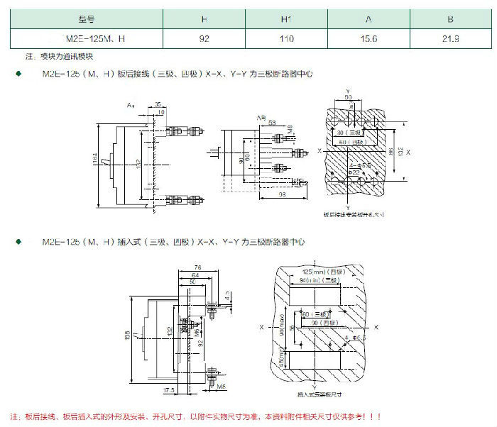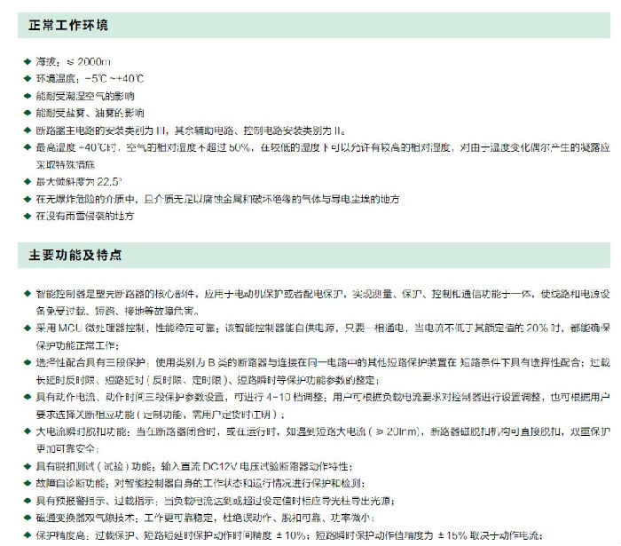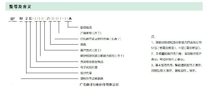 断路器按照其额定极限短路分断能力的高低,分为M型( 较高分断型)、H 型( 高分断型) 二种。该断路器具有体积小、分断能力高、飞弧短、抗振动等特点。