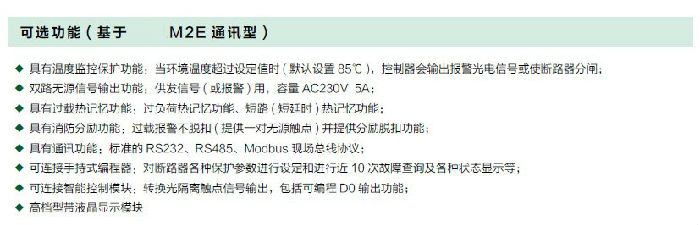 NYM2E 系列电子式塑料外壳式断路器( 以下简称断路器),适用于交流50Hz( 或60Hz),其额定绝缘电压为800V,额定工作电压690V 及以下,额定工作电流至800A 的电路中作不频繁转换及电动机不频繁起动之用。断路器具有过载长延时反时限、短路短延时反时限、短路短延时定时限、短路瞬时和欠压保护功能以及剩余电流保护( 可选),缺相保护功能( 可选),能保护线路和电源设备不受损坏,断路器保护特性齐全、精确,能提高供电可靠性,避免不必要的停电,其中“Z”型控制带有通讯接口,可进行“四遥”,以满足控制中心和自动化系统的要求。