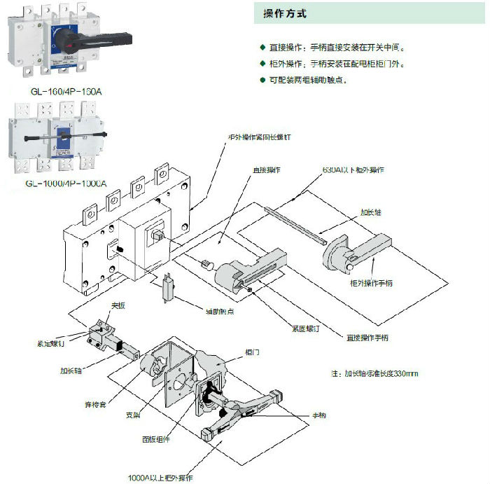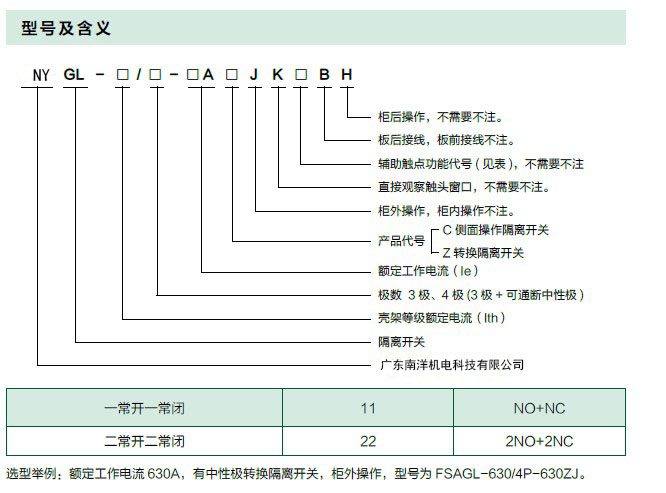 NYGL 系列隔离开关适用于交流50Hz,额定电压至660V,直流额定电压至440V,额定电流至3150A 的电路中,用于不频繁地接通与分断电路。