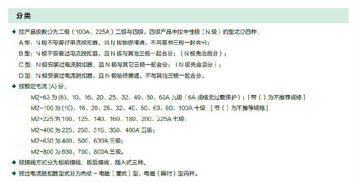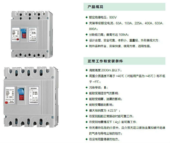 断路器按照其额定极限短路分断能力(lcu) 的高低,分为L 型(标准型)、M 型(较高分断型)、H 型(高分断型)三类。该断路器具有体积小、分断高、飞弧短(部分规格零飞弧)、抗振动等特点,是陆地及船舶使用的理想产品。