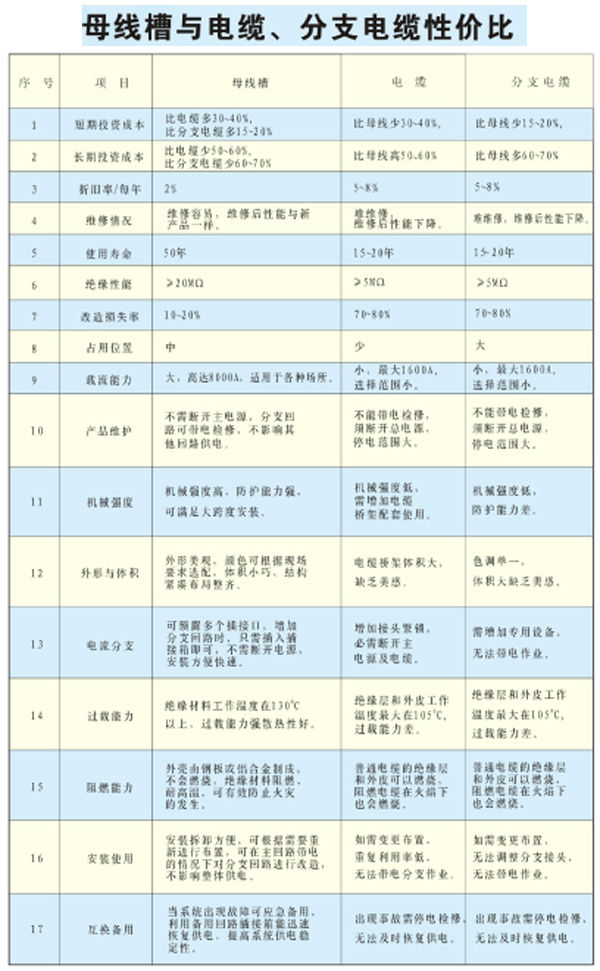 母线槽独特的外壳设计采用一次性拉挤成形的铝镁合金型材,外形美观且此系列产品采用了无螺栓组装,安装配置灵活。外壳机械强度高.可以满足大跨度安装技术要求,可在任何位置设置插口,分接方便。在实际应用过程中,获得良好评价。集多种先进技术于一体,带有散热片的铝镁合金型材,散热好、涡流少、载流量大,绝缘材料采用美国杜邦聚脂薄膜,绝缘性能好,耐高温、耐腐蚀,无有毒气体散发。是一款高防护、低阻抗,新型环保节能母线槽。